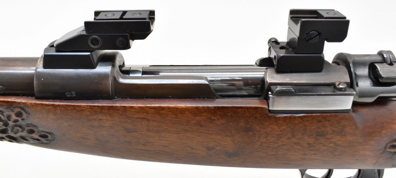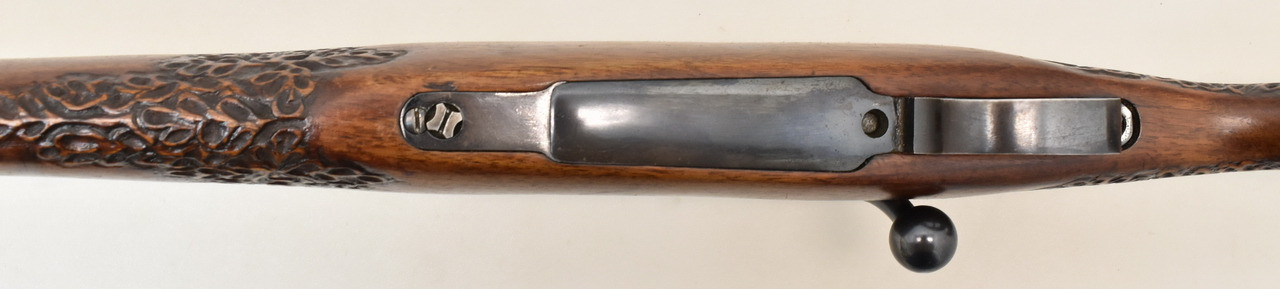 Jagdrepetierer mit einem 13x1 Mündungsgewinde und einem deutschen Stecherabzug. Spiegelblanker Lauf, Schaftlänge 36cm ( gemessen Abzug bis Mitte Schaftkappe) Schwenkmontageteile für Glas mit Innenschiene .
