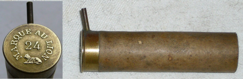 Angeboten wird 1 leere, ungebrauchte Schrothülsee Kal. 24, Marke AU LION. Eine frühe Fertigung von Francotte in Lüttich mit erhabenem Stempel.