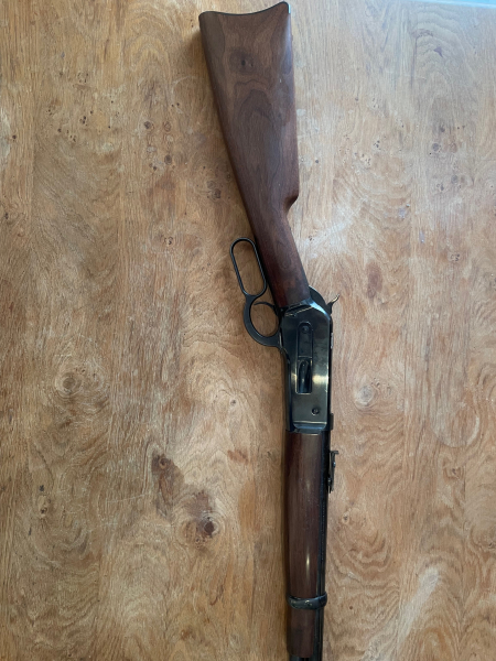 Hier wird eine von mir ungebrauchte Browning 1886 (Original aus Utah) Saddle Ring Carbine Kal. 45/70 angeboten. Auch der Vorbesitzer gab an, dass er diese nicht geschossen hat. Der Abzug und der Schlossgang sind leichtgängig und das Gewehr hat eine Leitervisierung als Kimme. Privatverkauf, daher keine Garantie oder Rückgabe möglich. Abholung vor Ort nach Terminvereinbarung ist natürlich möglich.