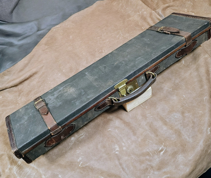 Leinenbezug schwarz-grün mit Lederverstärkungen und -Gurten,