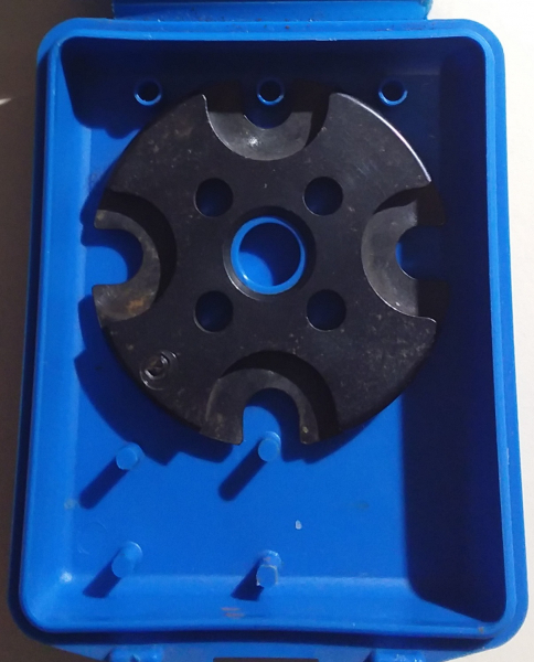 Verkaufe hier wie auf den Fotos zu sehen eine gebrauchte Dillon Hülsenhalteplatte für eine Dillon 550 Presse.