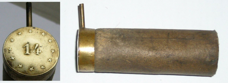 Angeboten wird 1 leere, ungebrauchte Lefaucheux-Schrothülse Kal. 14. Eine frühe Fertigung von Louis Bachmann in Brüssel, 14 + 12 Sterne erhaben gestempelt. Diese Hülse lagerte auf dem offenen Dachboden der Büchsenmacherei ERDELT in Neustadt/Haardt (Weinstraße). 100 Jahre haben eine Menge Schmutz hinterlassen, der noch nicht ganz entfernt ist.