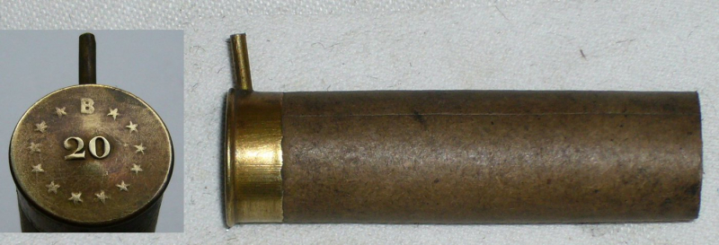 Angeboten wird 1 leere, ungebrauchte Lefaucheux-Schrothülse Kal. 20. Eine frühe Fertigung von Louis Bachmann in Brüssel, B 20 12 Sterne erhaben gestempelt. Diese Hülse lagerte auf dem offenen Dachboden der Büchsenmacherei ERDELT in Neustadt/Haardt (Weinstraße). 100 Jahre haben eine Menge Schmutz hinterlassen, der noch nicht ganz entfernt ist. Ist auch als geladenes Stück (MES) lieferbar.