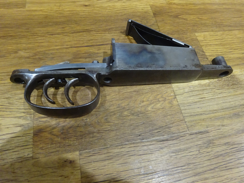 Magazinkasten System 98 mit Zubringer, Feder und Stecher-Abzug, gebraucht aber funktioniert einwandfrei und ist fein einstellbar.