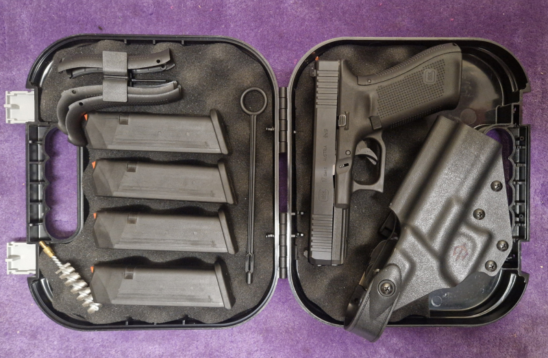 1x Glock 17, Gen. 5 (9 mm Luger) inkl. Zubehör (Plastik-"Putzstock", Bürste, Ladehilfe, Anleitung, Griffschalen / Backstraps)