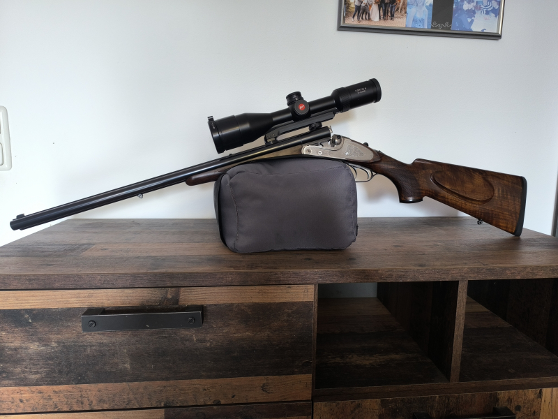 Die Waffe habe ich im vergangenen Jahr erworben und umbauen lassen. Es handelt sich um das Modell 260E aus dem Baujahr 2016 im Kaliber 8x57 IRS und 20/76 (3/4 Choke). Die Büchflinte hat 60 cm Läufe und eine Gesamtlänge von 102 cm.