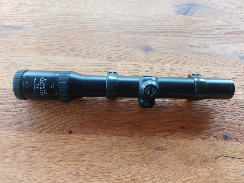 Zielfernrohr Zeiss Diavari Z 1,25-4x24 inkl. Schwenkmontage (Meiner Ansicht nach EAW) voll funktionsfähig, Linsen befinden sich in gutem Zustand, Korpus gut erhalten, wie auf den Bildern ersichtlich!, Absehen lt. BILD