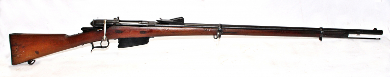 Interessante italienische Waffe, die 1916 auf das neue Kaliber 6,5mm Carcano adaptiert wurde. Nussbaumschaft (Hinterschaft mit leichten Riss). Der 85cm lange Lauf hat noch ein starkes Feld- Zugprofil. Rahmenlader für 6 Patronen. Sehr guter Schlossgang. Gesamtlänge 134cm. Ohne Neubeschuss. Verkauf nur an Händler, BüMa, Waffensammler oder Export.