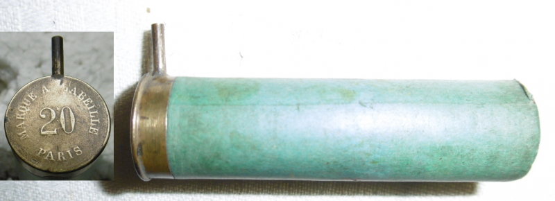 Angeboten wird 1 leere, ungebrauchte Lefaucheux-Schrothülse Kal. 14, FABRIQUE A LÀBEILLE 20 PARIS, erhaben gestempelt. Diese Hülse lagerte auf dem offenen Dachboden der Büchsenmacherei ERDELT in Neustadt/Haardt (Weinstraße). 100 Jahre haben eine Menge Schmutz hinterlassen, der noch nicht ganz entfernt ist.