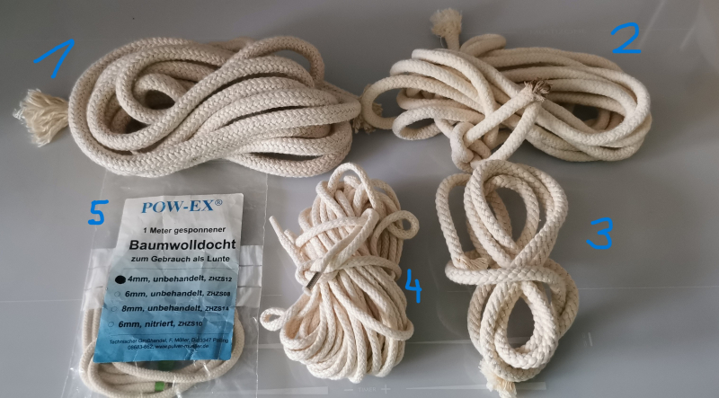 Die feine Baumwoll-Flechtschnur ist unbehandelt und muss nicht nitriert werden. Langsames Glimmen sorgt für eine lange Nutzungsdauer.