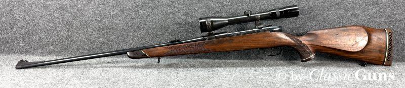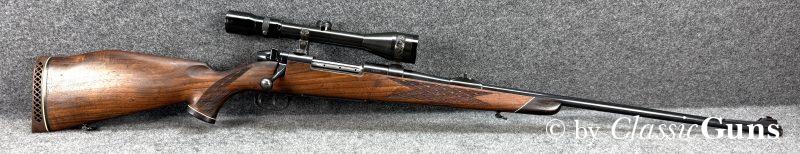 Sehr gut erhaltene und auf Grund des unvergleichbar geschmeidigen Repetiervorgangs und der extrem belastbaren Verriegelung unter Kennern sehr gesuchte Repetierbüchse, in unserer Büchsenmacherwerkstatt fachmännisch gereinigt und verantwortungsbewusst geprüft.
