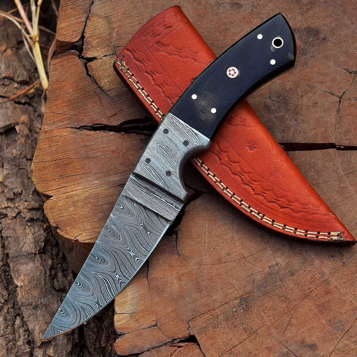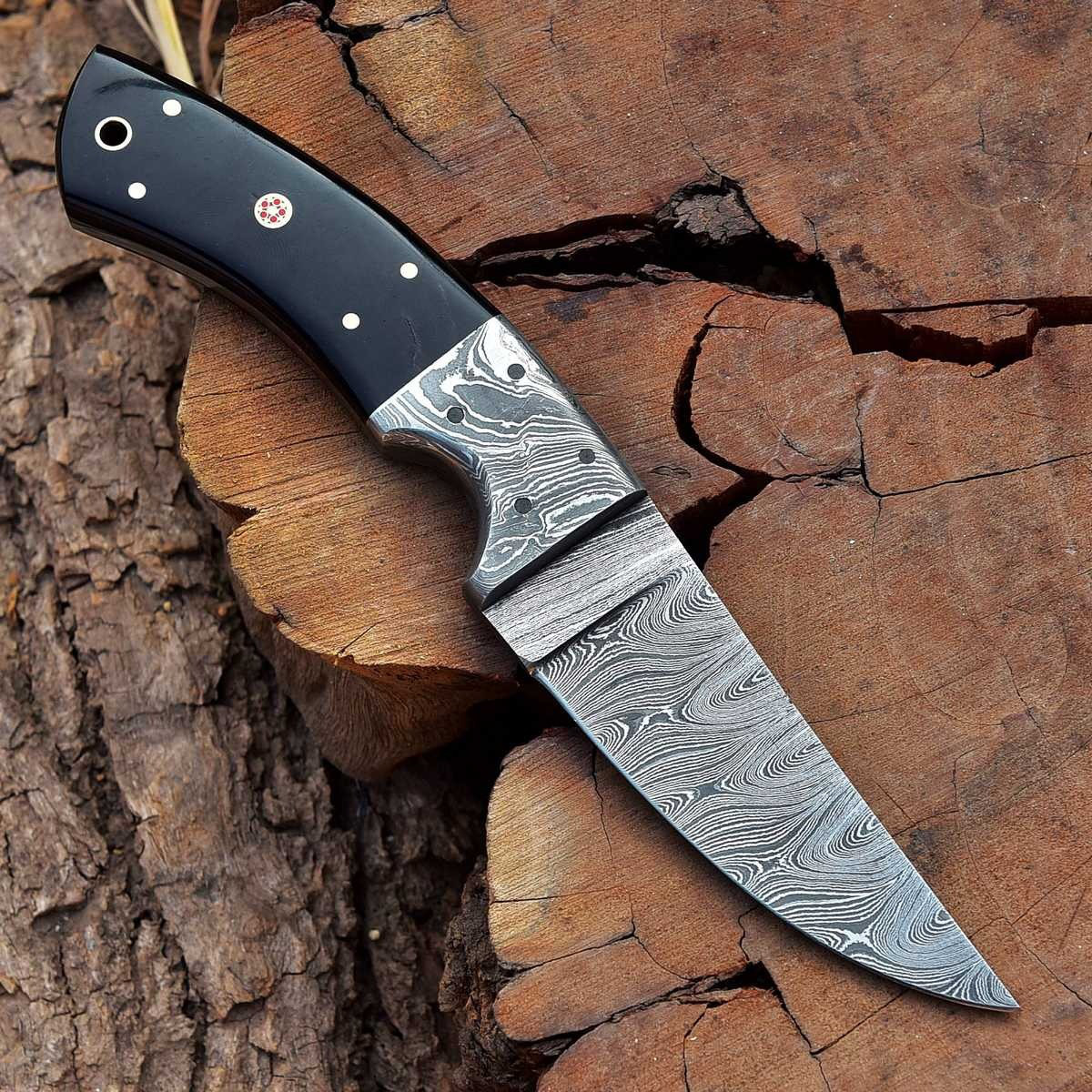 Hier erhalten Sie ein sehr schönes Hand geschmiedetes Damast Jagd Messer in reizvollem schöner Klingenmaserung
