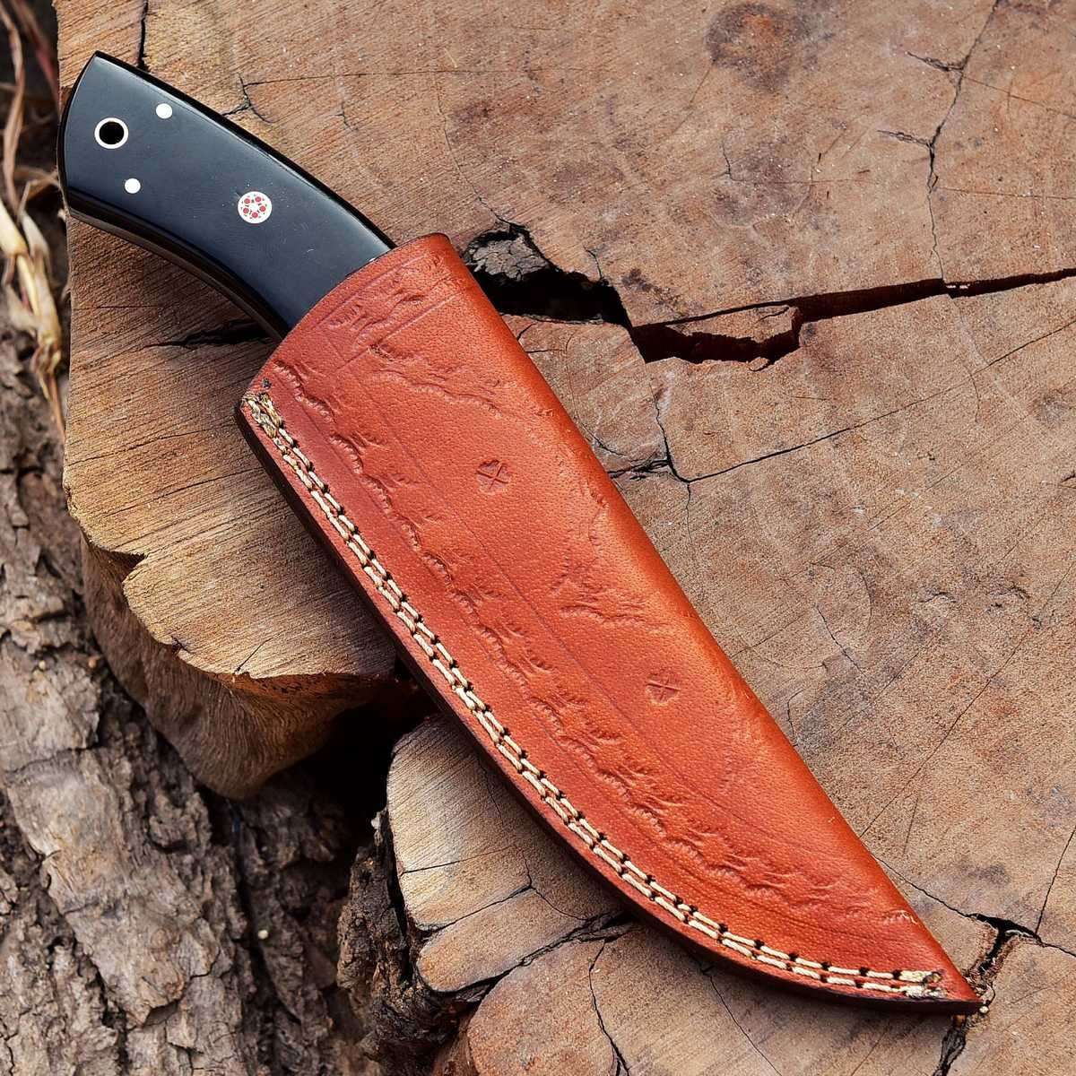 Die ebenfalls Hand gefertigte Leder Scheide besteht aus hochwertigem Rind Leder und wurde dem Messer genau angepasst.
