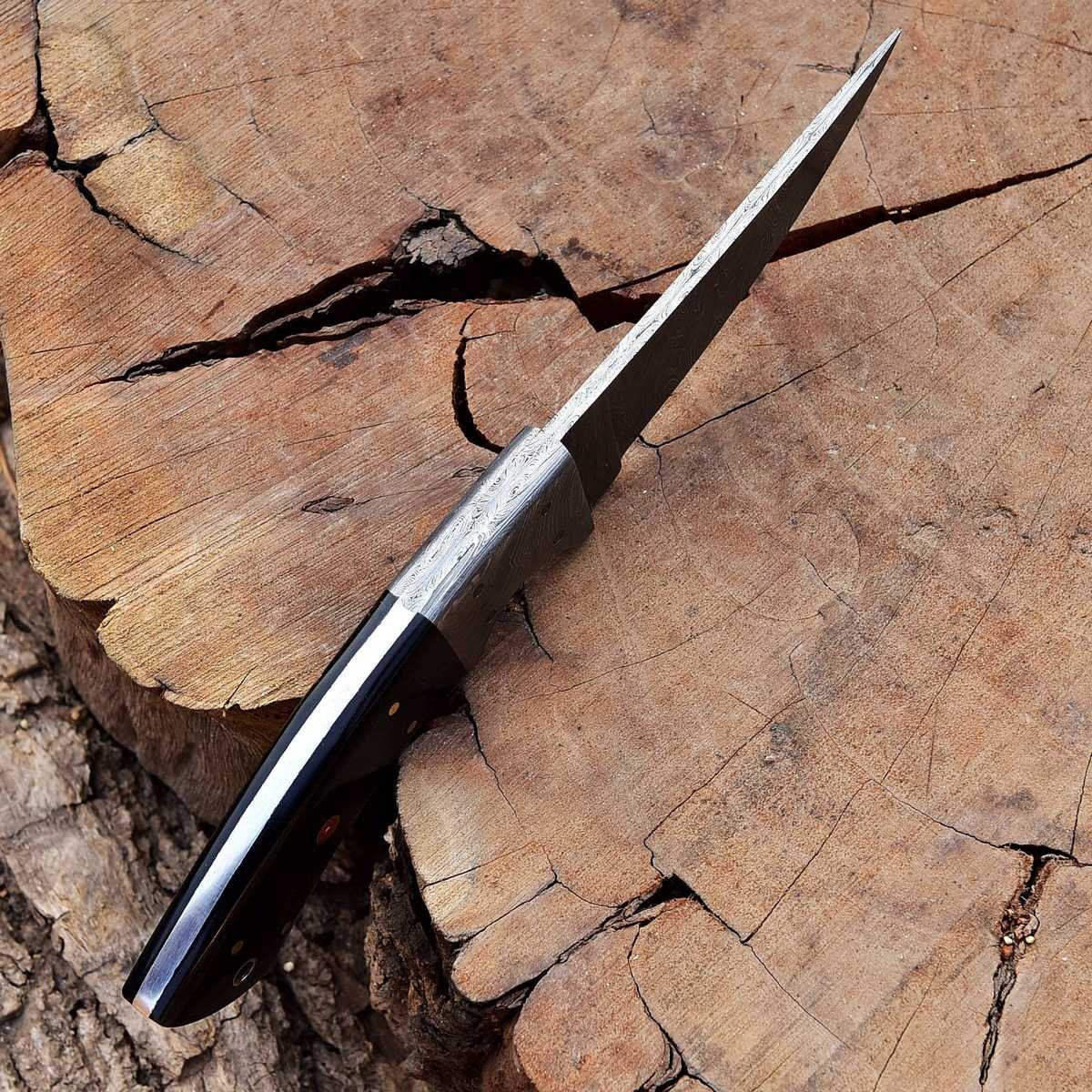 Our Damascus blades are made from high quality non-stainless steels which rival or exceed any Damascus blade made from the 10 series with 15N20. Our Damascus combination has taken years to perfect and has been tested under a variety of application which will offer professional performance in categories of toughness, strength (lateral stress) and edge honing and holding ability. In a 5 spot Rockwell test our blades will average near or close to 58 which offers a perfect balances between its toughness and strength. Our blades due to carbon content need to be regularly treated with wax and/or 3 in 1 oil to maintain its superior quality.