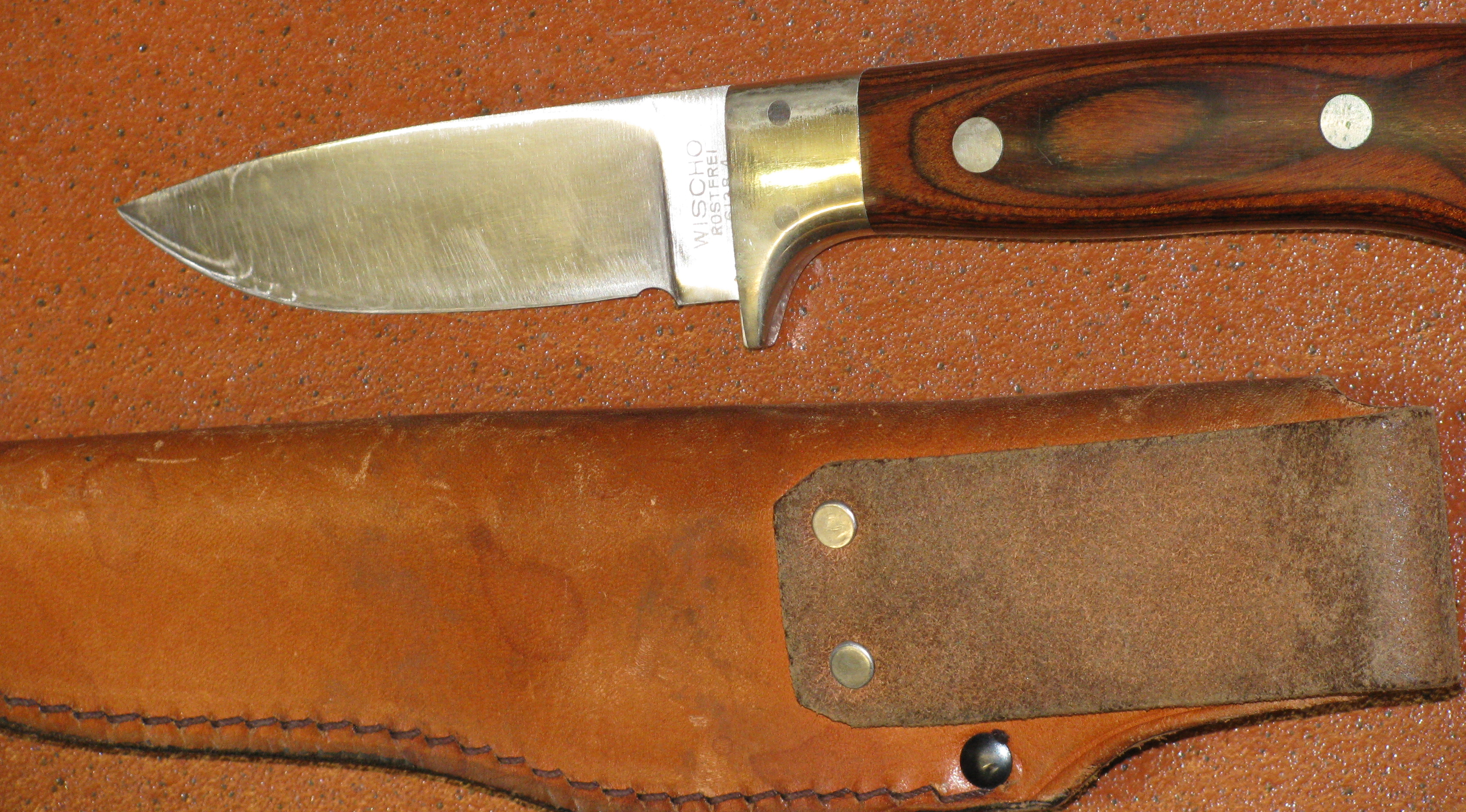 Zum Verkauf kommt ein schönes WISCHO Jagdmesser 6138.4 mit Lederscheide