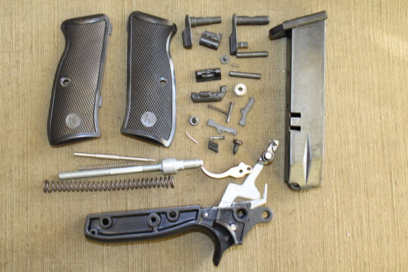 Verkaufe ein Set gebrauchte Ersatzteile für ital. Pistole Mod. 75 (Kimar) Kal. 9mmPAK.