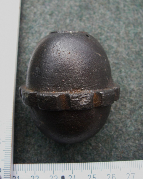 Hier verkaufen wir, nach den uns vorliegenden Informationen, eine alte, originale, delaborierte Handgranate, vermutlich Deutsches Kaiserreich 1. Weltkrieg, vermutlich Modell 17 - "Eierhandgranate", siehe Fotos.