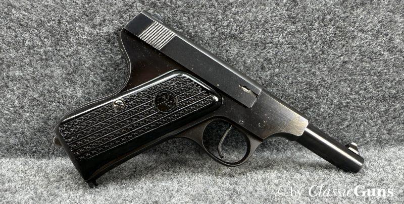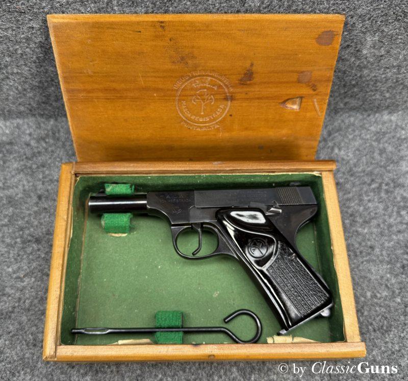 Sehr gut erhaltene und in Europa extrem seltene argentinische .22er Pistole im Stil der bekannten Colt Mod. Woodsman, in unserer Büchsenmacherwerkstatt fachmännisch gereinigt und verantwortungsbewusst geprüft.