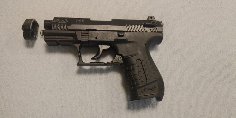 Zum Verkauf steht die abgebildete Walther P22 im defekten Zustand.