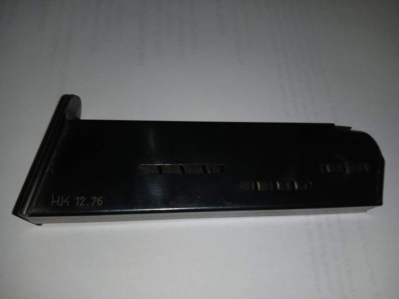 Biete hier ein Original Magazin für eine Heckler & Koch Pistole cal 9 mm Para ohne Mängel Aufschrift H&K 12.76 Versand mit Hermes 6 € Privatperson. Keine Garati oder Rücknahme