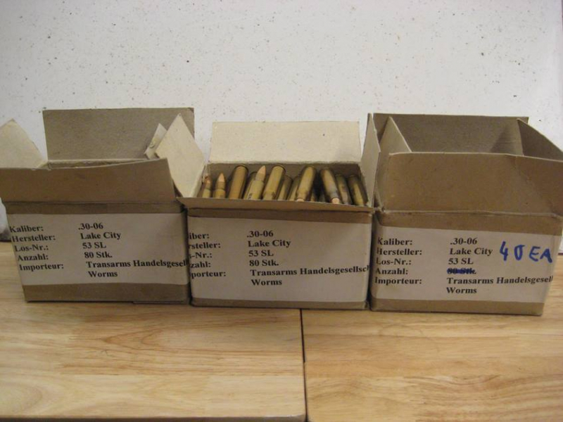 Es werden hier 200 Schuss Surplusmunition im Kaliber .30-06 angeboten. Es handelt sich hier um Patronen mit einem 147gr. VM-Geschoss. Diese Patronen wurden vor Jahren von der Fa. Transarms angeboten. Dies ist eine Restbestand, der aufgrund eines Waffenwechsels übrig geblieben ist.