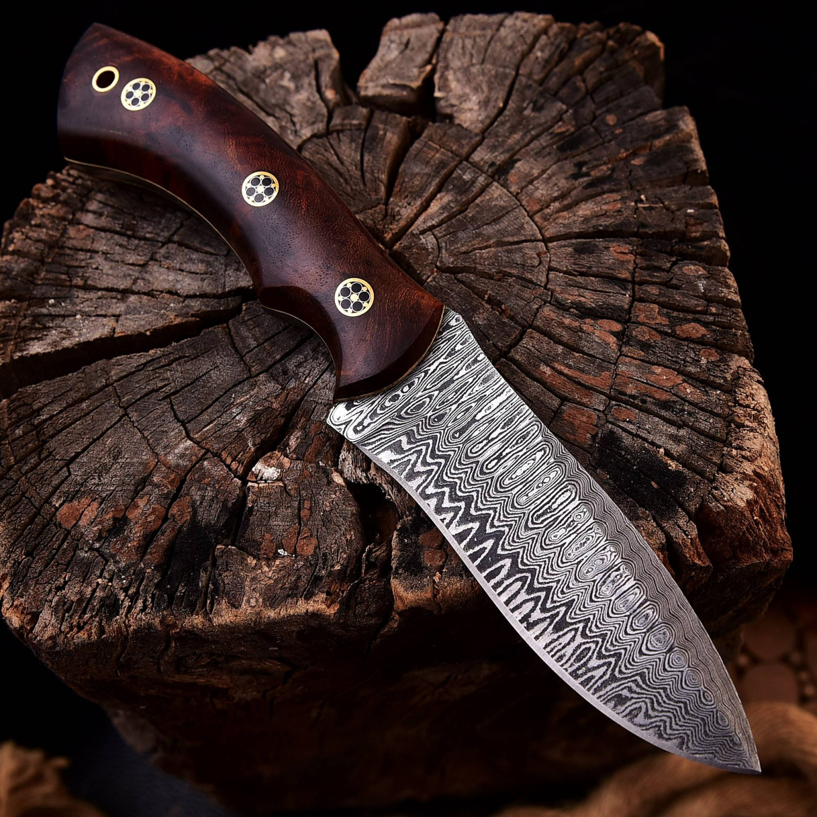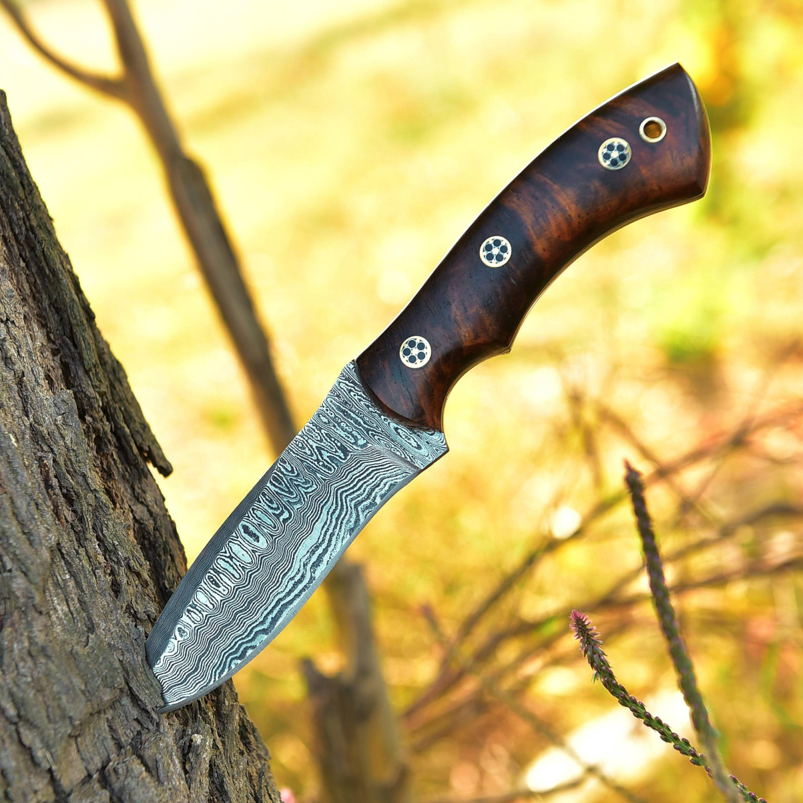 Hier erhalten Sie ein sehr schönes Hand geschmiedetes Damast Jagd Messer in reizvollem Torsion Muster.