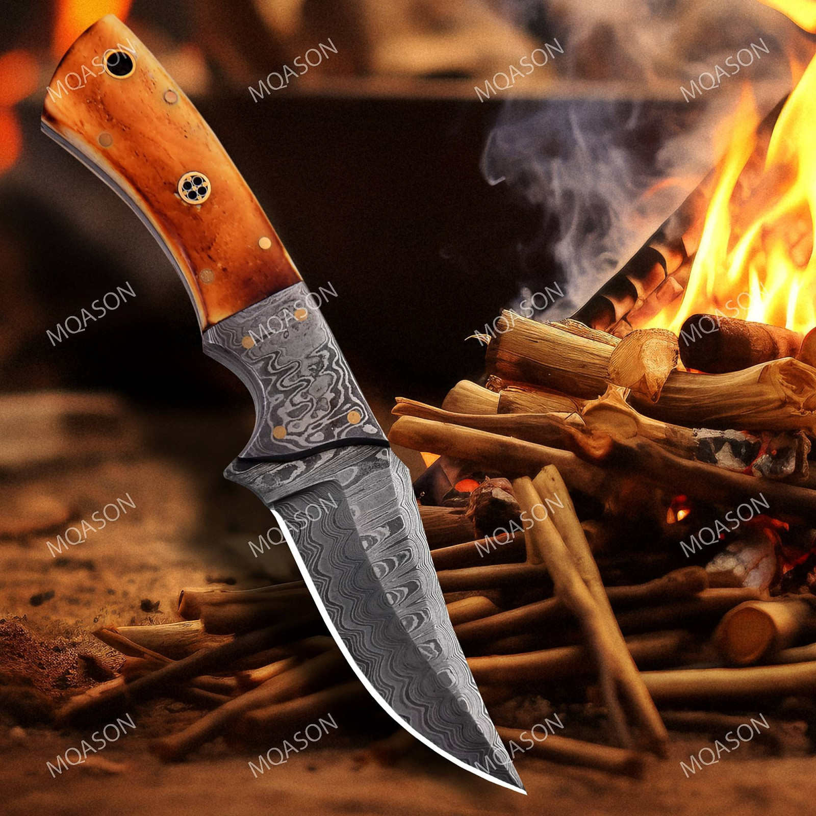 Hier erhalten Sie ein sehr schönes Hand geschmiedetes Damast Jagd Messer in reizvollem Torsion Muster.