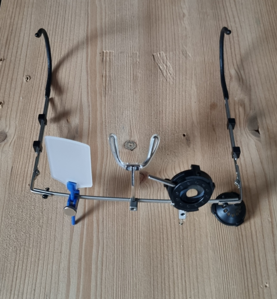Natürlich gehört zur Brille auch der Glashalter. Er ist auf den Bildern leider nur schwer erkennbar, da die Irisblende auf den Glashalter aufgeklemmt ist.