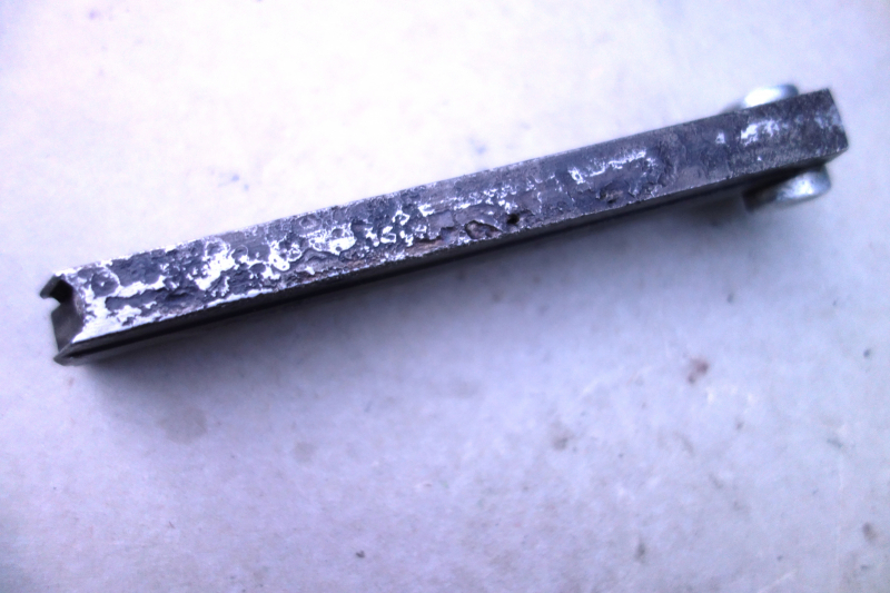 Ein Schlüssel 08, ein Magazin 08, das gefräst ist, teilweise stark angerostet, mit einem Stempel.