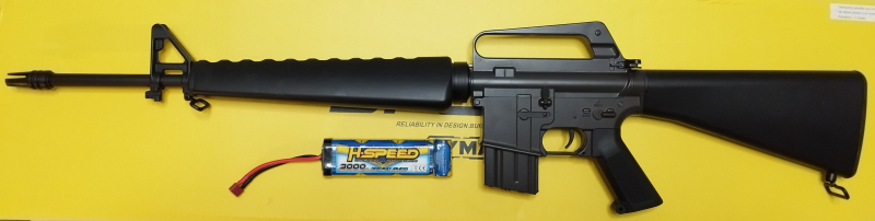 Biete hier, wegen Sammlungsverkleinerung, ein M16 VN von CYMA in der "Mosfet Edition" an. Handguard und Stock aus Kunststoff, der Rest Metall. Hatte es direkt auf einer Messe erworben und war seitdem nur zur Deko bei mir. Ein Akku liegt mit bei aber besitze kein Ladegerät um ihn zu testen. Das Gewehr besitz kein F im Fünfeck und schießt Single + Auto. Über die Leistung kann ich nix sagen. OVP und sämtliches Zubehör (Anleitung und Werkzeuge) liegt bei.