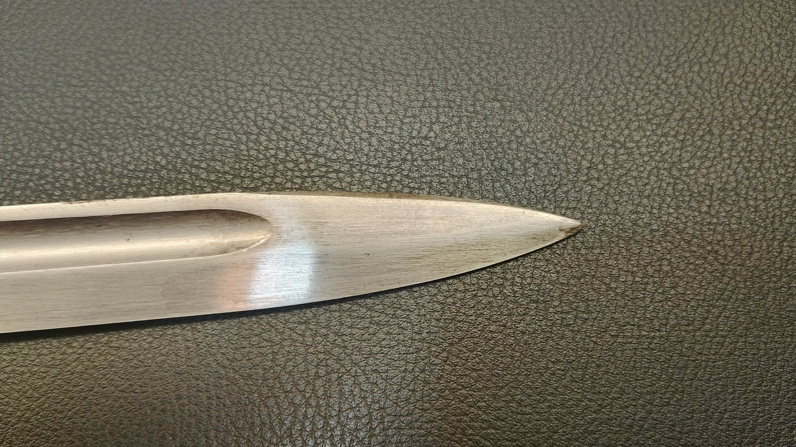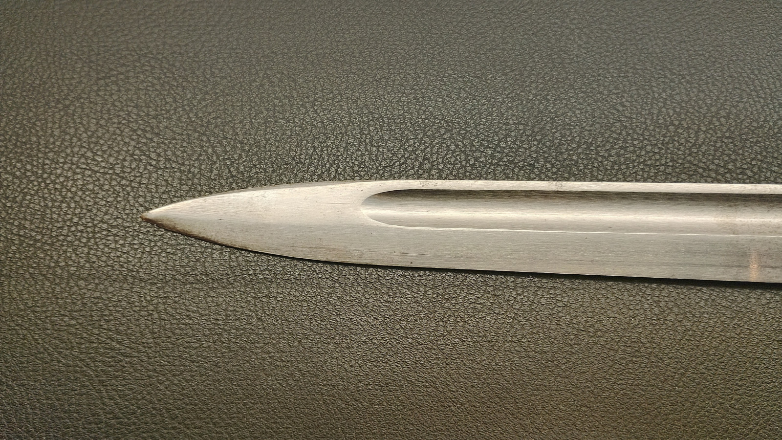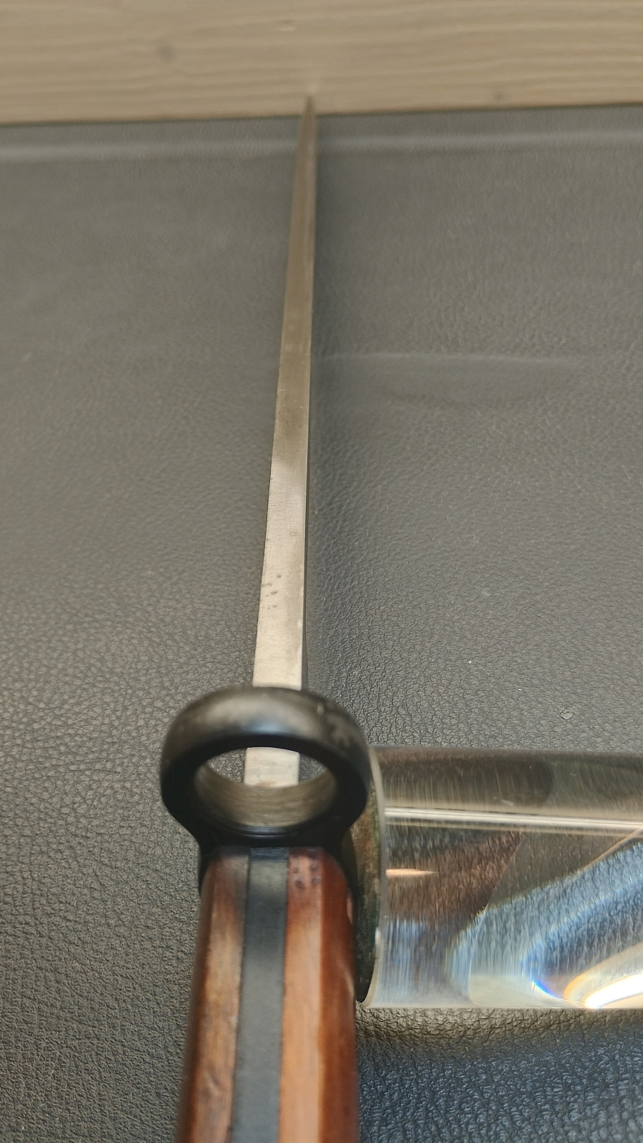 Verkaufe aus meiner Sammlung . Unbekanntes Bayonett ; Klinge unbeschliffen ; Drücker leichtgängig ; OHNE SCHEIDE ; Klingenlänge ca. 29,8 cm ; Gesamtlänge ohne Scheide ca. 42,9 cm. ; Montegering innendurchmesser ca. 1,5 cm der Außendurchmesser ca. 2,4 cm . Erhaltungszustand ist Ansichtssache . Bitte schätzen Sie den Zustand des angebotenen Artikels anhand der Bilder selbst ein . Bilder sind Gegenstand der Auktion .,, Viel Spass beim Bieten,,,,,,,