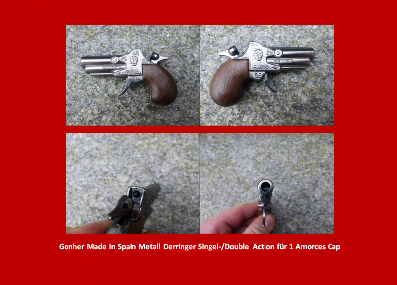 Verkaufe einen Gonher Made in Spain Metall Derringer Singel-/Double Action für 1 Amorces Cap (Karnevalsmunition)