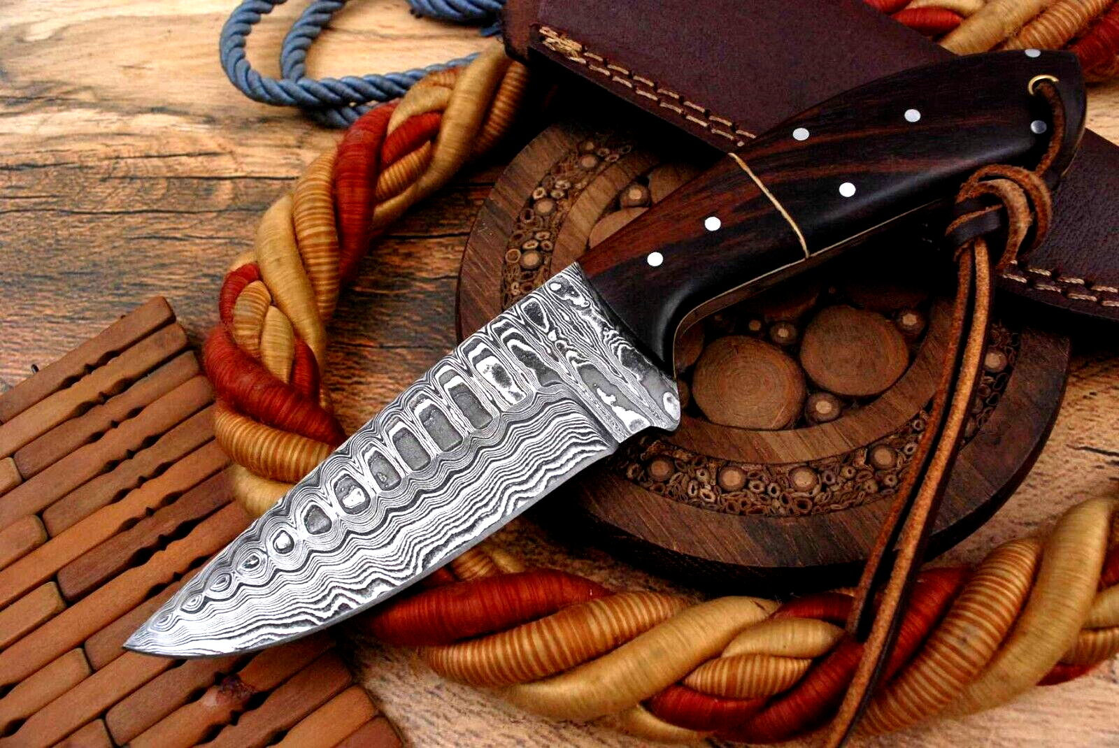 Unser Damaszener wird sehr aufwendig aus zwei verschiedenen Stahlsorten 1070 & 4340 handgeschmiedet. Durch fünffaches Verdoppeln der Stahllagen und erneutes Schweißen wird die Anzahl der Lagen so vervielfacht. Somit besteht unser Damaszener aus 176 Lagen. Dies zeichnet unsere Messer durch seine lang bleibende Schärfe, Zähigkeit und Härte aus.