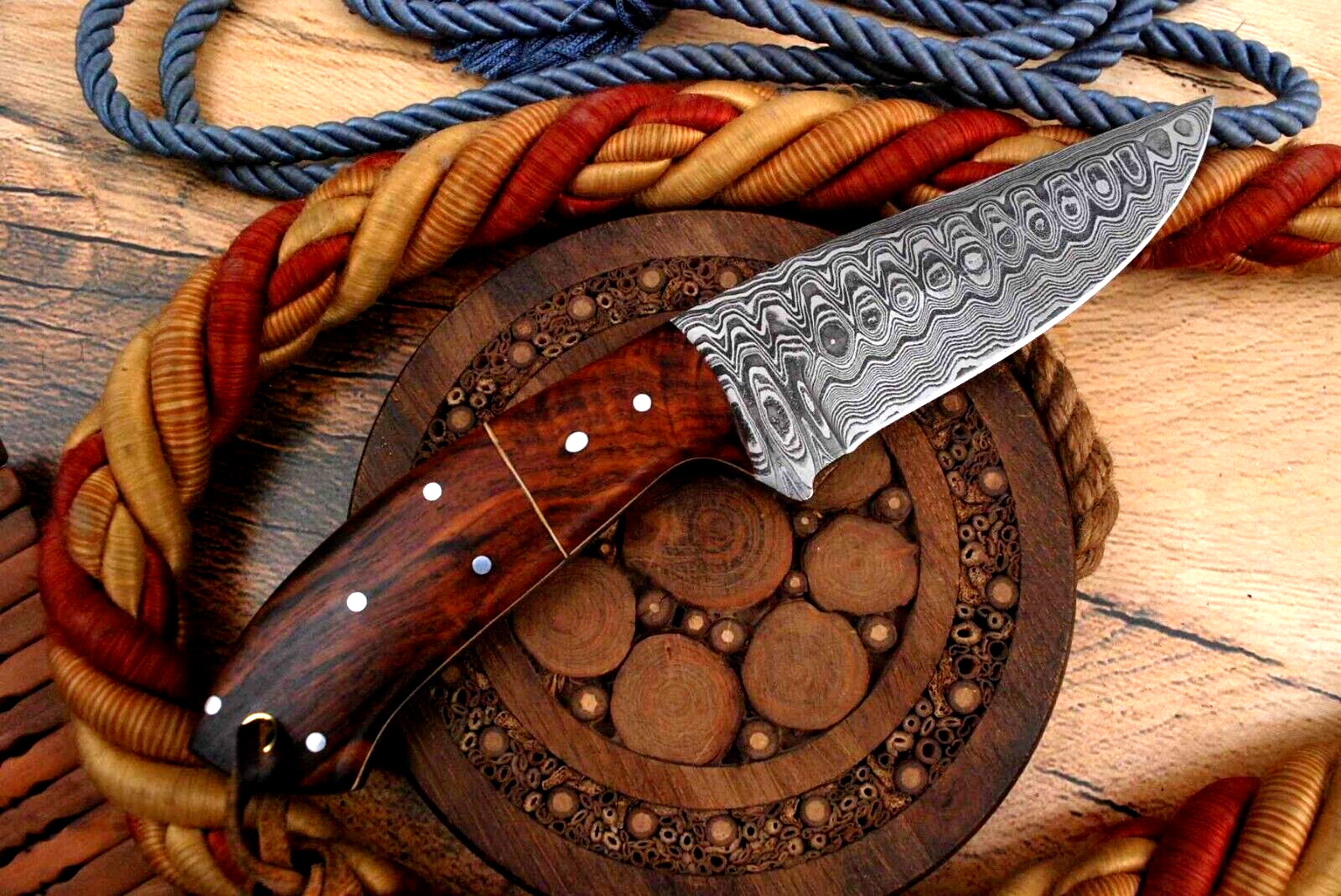 Hier erhalten Sie ein sehr schönes Hand geschmiedetes Damast Jagd Messer in reizvollem Torsion Muster.