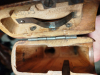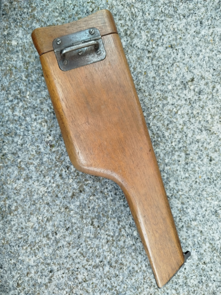 Ich wollte mit dieser Auktion zunächst einmal klären, um was für einen außergewöhnlichen Kasten es sich hier überhaupt handelt. Dessen Besonderheit dürfte jedem Sachkundigen sofort ins Auge fallen: Der Drahtbügel zur Befestigung am Koppel, oder auch zur Anbringung eines Schulterriemens, ist hier deutlich größer und stärker ausgeführt als üblich. Während dieser sonst aus 4mm Draht gefertigt ist und eine Breite von 28mm aufweist, wurde hier 5mm Draht verwendet, und die Breite beträgt 46mm. Um das so verwirklichen zu können musste der Bügel 8mm weiter nach oben rücken, da er sonst die Position der unteren Scharnierschrauben abgedeckt hätte. Ich hatte das so anderweitig noch nie gesehen, hielt diese Ausführung aber bisher für werkseitig. Knapp 20mm unterhalb des Scharniers befindet sich eine Kennzeichnung, meines Erachtens eine deutsche Abnahme aus dem Kaiserreich. Die Nummer auf dem Kupplungsstück lautet 371. Im Deckel wurde handschriftlich, augenscheinlich mit Bleistift, eine fünfstellige Nummer im 50.000 Bereich angebracht. Da völlig abweichend von der Nummer auf dem Kupplungsstück, dürfte diese aber nichts mit der ursprünglich zugehörigen Waffe zu tun haben. Der Zustand des Kastens ist rundum wirklich außergewöhnlich gut. Keinerlei Risse oder Beschädigungen, der Deckel passt und schließt perfekt. Ich hatte in der Vergangenheit schon einige, wirkliche Fachleute zu diesem Kasten befragt, aber niemand konnte mir eine Erklärung für den vergrößerten Bügel liefern. Aber irgendeinen Grund musste das ja haben... Dank der Zuschrift eines Mauser C96 Spezialisten scheint das Rätsel nun gelöst zu sein. Leider wohl nicht die erhoffte Super Rarität ab Werk, aber immer noch ein hochinteressantes, sehr rares und hervorragend erhaltenes Stück. Zur Sache: Im extrem harten Fronteinsatz hatte sich die neue, lederne Tragevorrichtung der Militärausführung am Koppel nicht bewährt. Es dauerte zu lange die Waffe zu entnehmen und feuerbereit zu machen. Glitt diese einem aus der Hand, oder mußte sie kurz abgelegt werden, dann drohte deren Verlust (als ehemalige Einsatzkraft und Schießausbilder ist mir letztere Problematik in Hinblick auf die Handhabung der H&K MP5 mit / ohne Trageriemen noch sehr gegenwärtig). Tatsächlich lag die Lösung des Problems aber schon vor Augen: Die früheren Kästen hatten am Scharnier einen Metallbügel, mit welchem man den Kasten direkt am Koppel befestigen konnte, alternativ aber auch an einem Schulterriemen. Bei der deutschen Militärausführung war dieser Bügel nun aber wegen der ledernen Tragevorrichtung in Wegfall geraten. Also wurde dieser Kasten offenbar mit einem solchen Teil nachgerüstet, wobei diese Arbeit sehr professionell mittels Vernieten ausgeführt wurde. Der Bügel sitzt bombenfest. Eine Verstärkung und Vergrößerung des Bügel machte Sinn. So konnte hier viel einfacher ein gewöhnlicher Schulterriemen mit zwei Haken Verwendung finden und damit die Waffe mit angestecktem Kasten, sofort voll einsatzbereit und gegen Verlust gesichert, im Einsatz geführt werden. Eine solche Trageweise entsprach auch viel eher dem Vorbild der ordonnanzmäßig eingeführten, langen Pistole 08. Dieser C96 Spezialist erwähnte mir gegenüber auch, diesbezüglich schon mehrere, oft provisorisch anmutende Lösungen gesehen zu haben. Ich gehe hier aufgrund der professionellen Ausführung jedoch eher von der Arbeit eines Waffenmeisters aus. Auch wenn Sie selber nicht am Erwerb interessiert sind, aber einen ähnlichen Kasten besitzen, dann schreiben Sie mir doch bitte. Ebenso, wenn Sie weitere Detailfotos wünschen. Gebote in dieser Auktion sind selbstverständlich absolut verbindlich! Es handelt sich hier um ein Angebot von Privat. Gewährleistung, Umtausch, Rücktritt vom Kauf und dergleichen sind in jedem Fall ausgeschlossen. Mit einem Gebot erklären Sie sich ausdrücklich mit diesen Bedingungen einverstanden und erkennen diese an. Der Versand erfolgt versichert mit DHL, das Versandrisiko trägt der Käufer. Käufer aus dem Ausland tragen alle zusätzlich entstehenden Kosten oder Gebühren und sind selber dafür verantwortlich, ob eine Lieferung an den Bestimmungsort möglich und rechtens ist.