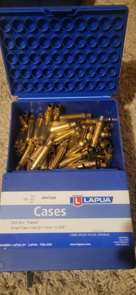 Wegen Verkauf der Waffe biete ich ihnen hier 200 Hülsen von Lapua in 308 Palma / 308 Winchester an.