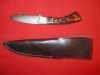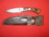 Messer aus dem Hause Böcker, Damastklinge. Unbespielt, allerdings mit Patina durch die Aufbewahrung im Lederholster. Weitere Fotos auf Anfrage.