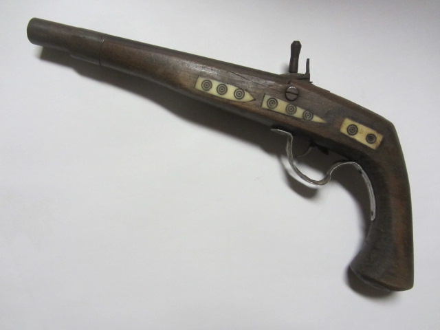 Steinschloßpistole, wird als defekt angeboten, Herkunft vermutlich Nordafrika, aus Haushaltsauflösung. Fragen dazu beantworte ich gerne.