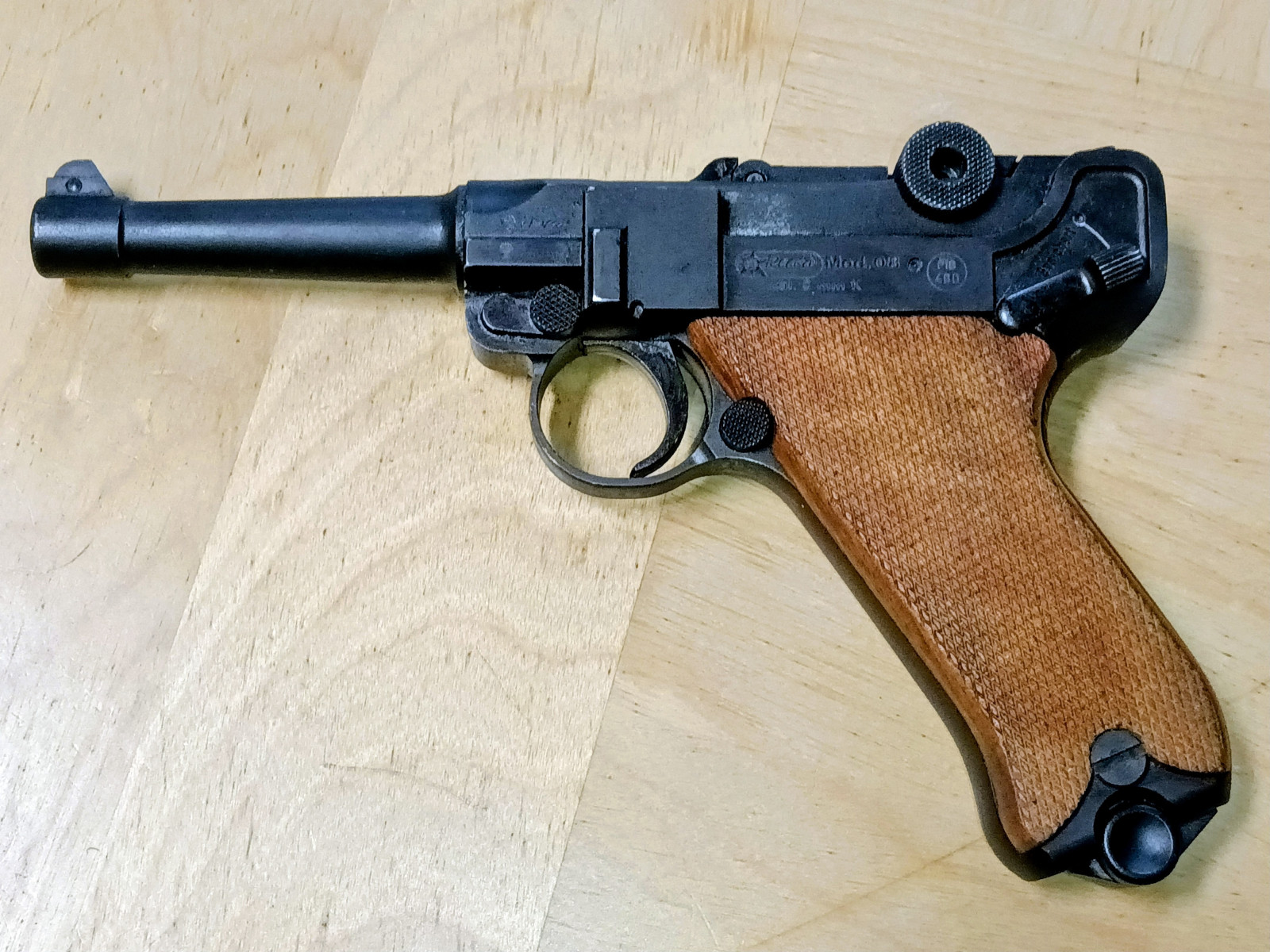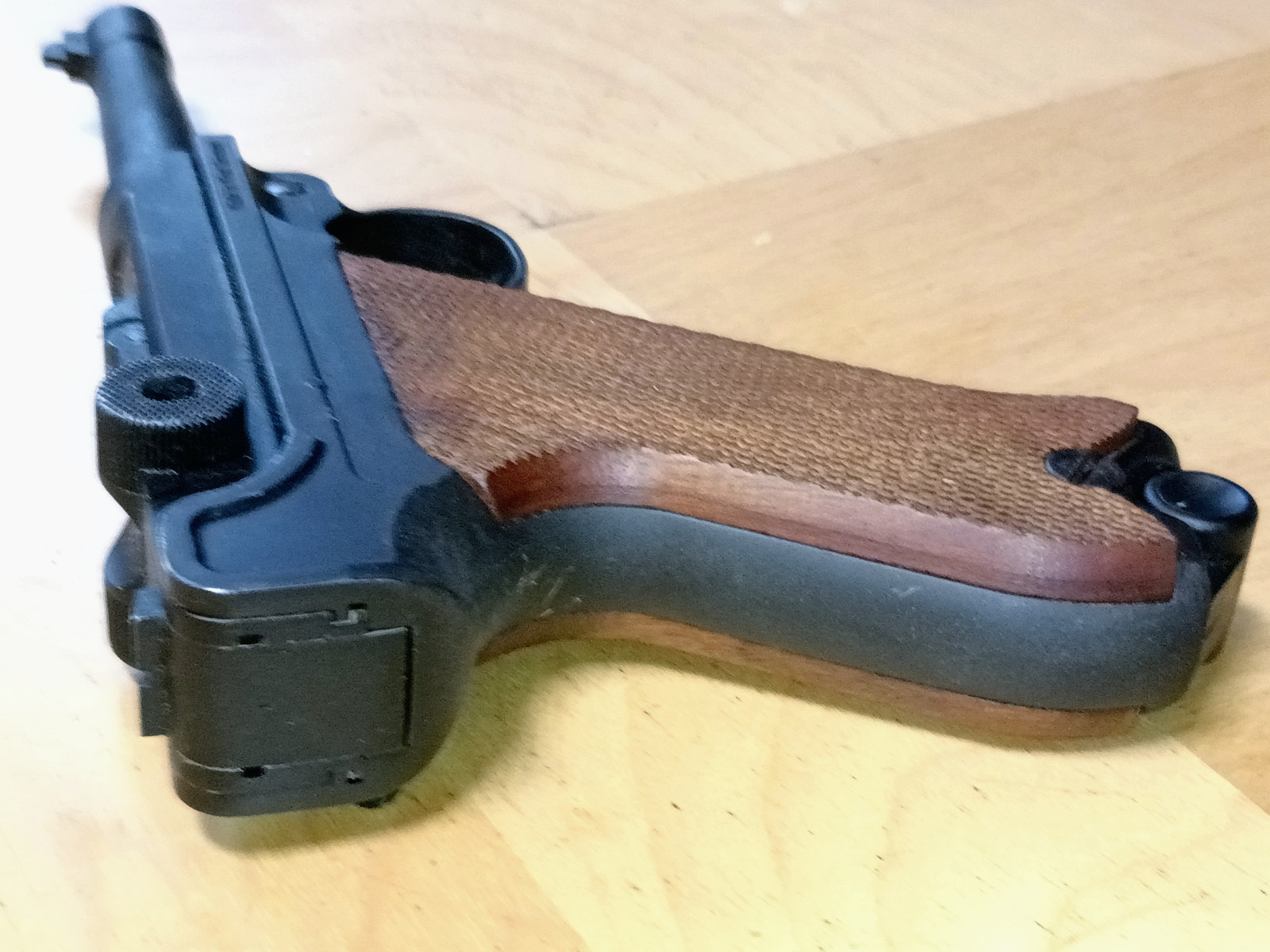 Detailgetreuer Nachbau der berühmten P08, hier als Schreckschuss Pistole im Kaliber 9 mm P.A.K.