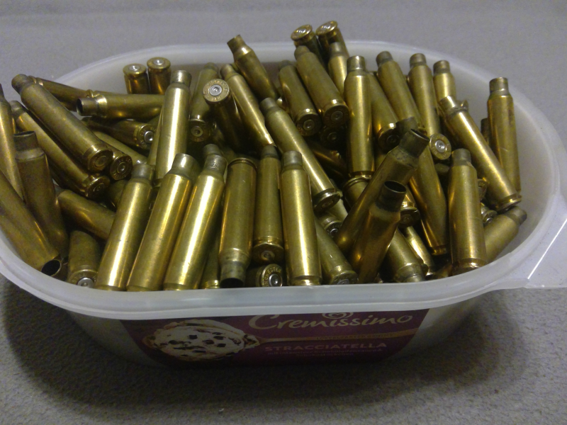 Hülsen 1 x abgeschossen, nicht gereinigt, nicht bearbeitet.