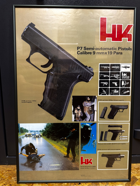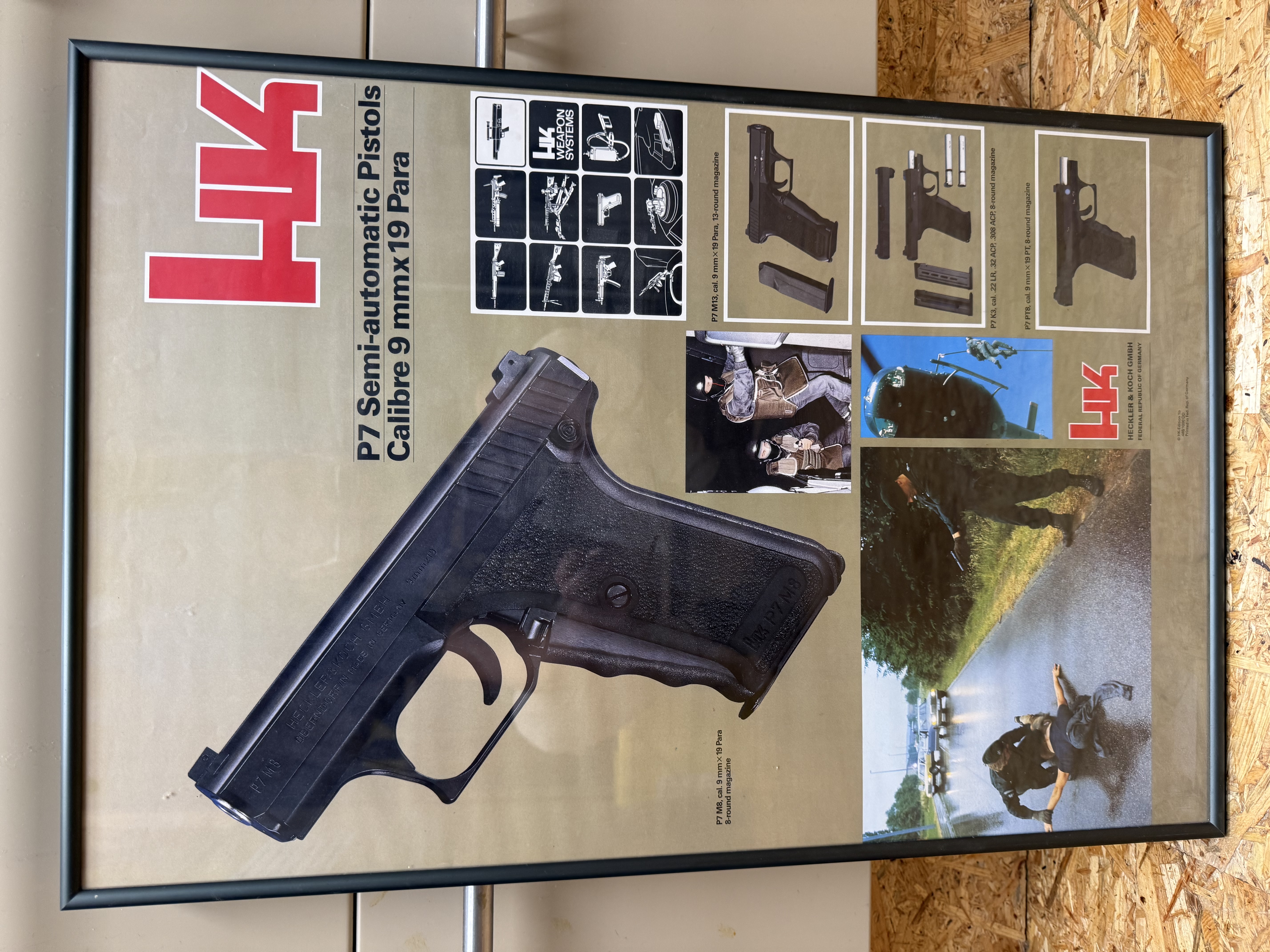 Absolute Seltenheit aus Sammlungsauflösung. Ein original Heckler und Koch Werbeposter gerahmt. Der Zustand ist neuwertig. Beachte: der Metall-Bilderrahmen ist im passenden damaligen Polizeigrün / BGS gehalten. Ist auf dem Foto schlecht zu erkennen. Weitere Fotos gerne bei Anfrage. Größe des Posters inclusive dem Rahmen 40,5x60,5cm Das Poster wird mit dem Rahmen angeboten.