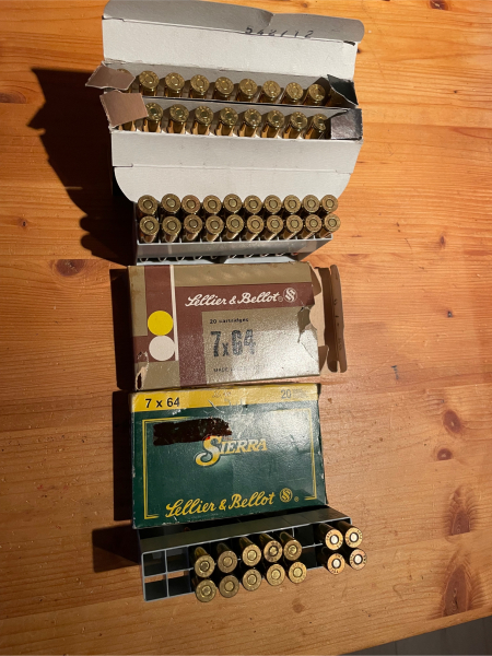 Zur Versteigerung kommt ein Konvolut im Kaliber 7x64 jagdliche Munition insgesamt 54 Schuss.