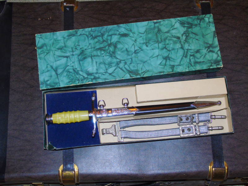 Nationale Volksarmee Ehrendolch für Offiziere mit Gehänge und Originalkarton. Bekam Mitte der 60er Jahre ein damaliger Leutnant des Mot. Schützenregiments 29 in Prora.
