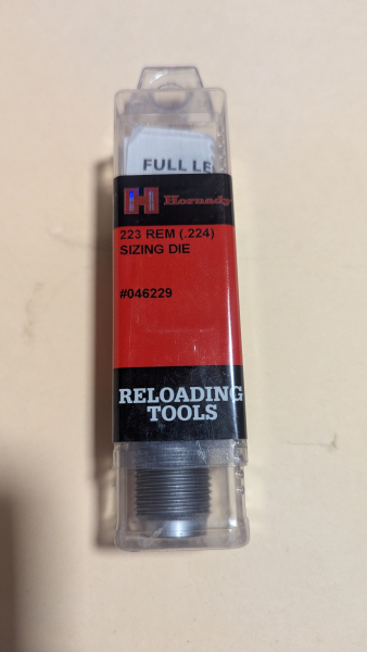 Neue, unbenutzte Hornady .223 Kalibriermatrize. Wurde nur für das Bild aus der Schachtel entnommen.