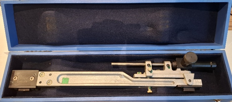 Das Gerät dient dazu, bei Gewehren im passendem Kaliber 7,62 mm die Visierung zu justieren. Dabei wird der dünne Stift von vorne in die Laufmündung gesteckt und die Waffe auf ein Ziel eingerichtet. Auf Grund dieser Einstellung kann dann die Visierung oder das ZF justiert werden. Das Gerät verfügt dabei über eine Kontrolloptik. Gehäuse: kunstlederbezogene, blaue Holzkassette.