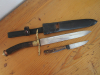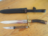 Alter Hirschfänger, Jagddolch mit Lederscheide und Beimesser mit Gebrauchsspuren. Auf der Klinge steht, Puma Solingen, auf dem Beimesser steht, Solingen, und der Horngriff dürfte in Handarbeit entstanden worden sein. Der Horngriff vom Jagddolch wackelt minimal. Ich denke, dass die Lederscheide in der Neuzeit gefertigt worden ist, macht aber einen stabilen Eindruck und die Nähte sind fest. Eine interessante Kombination, das ich selbst auf einer Auktion erstanden habe. Über Alter und Originalität kann ich keine Angaben machen. Gesamtlänge 34 cm, das Beimesser ist 17 cm lang. Versand in benachbarte Länder, erhöht sich der Versand. Da Privatverkauf keine Garantie oder Umtausch.