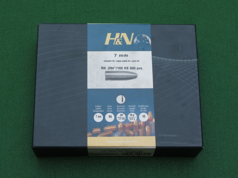 Hier bieten Sie auf 500 Stück H&N Blei Geschosse Ausführung HS Verkupfert 7mm .2,84“ (7,21mm) 160 grain 10,37 gram original Verpakt und ungeöffnet.