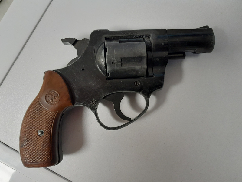 Schreckschussrevolver Röhm RG 79, 9 mm Knall, Signalbechermündung; d.h. daß kein Signalbecher separat aufgeschraubt werden muß. Verkauf als defekt, weil untere Ecke links an Griffschale abgebrochen ist, sonst ok. Privatverkauf, keine Garantie, keine Rücknahme. Versand nur innerhalb BRD.