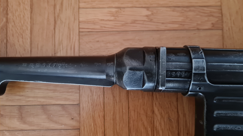 Die Maschinenpistole ist mit Waffenamtsstempeln am Korn, Magazinschacht, Lauf, Verschlusskörper (beidseitig), am Verschluss, am Abzugsbügel und an der Endmutter versehen, wo sich der Code Bnz 41 befindet. Das Modell ist geschwärzt und weist Details wie das Original auf – verwendete Nieten an der Klappstütze, Bearbeitungsmuttern am Handschutz usw. alle Gussflächen sind vorhanden. Gestempelt mit der Produktionsnummer 5375.