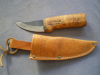 Verkaufe aus Sammlung ein neues Handmade Jagdmesser von der Fa. Roselli, Finnland mit Lederscheide. Gesamtlänge 18cm, Klingenlänge 7cm.